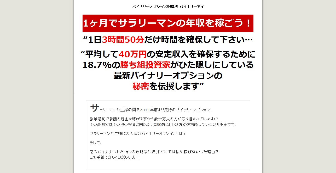 1ヶ月でサラリーマンの年収を稼ぐ! バイナリーオプション攻略法 - バイナリーアイ