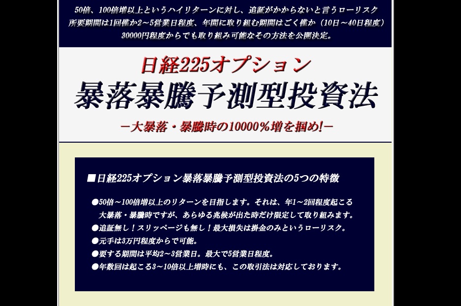 この投資法は、日経225オプションといった投資手法を含め、