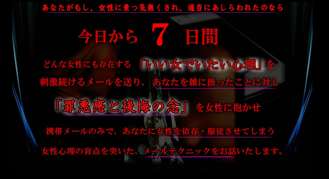 >> 女性の罪悪感を操り、女性をあなたに依存させるメールテクニック。 <<